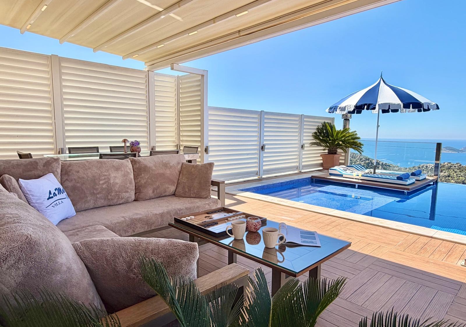 Villa La Mer is 4 bedroom luxury villa for 8 people, located at Kördere area of Kalkan, just 6 min. drive to Kalkan Center and 15 min. drive to one of the most famous beaches of Turkey, Kaputaş Beach.